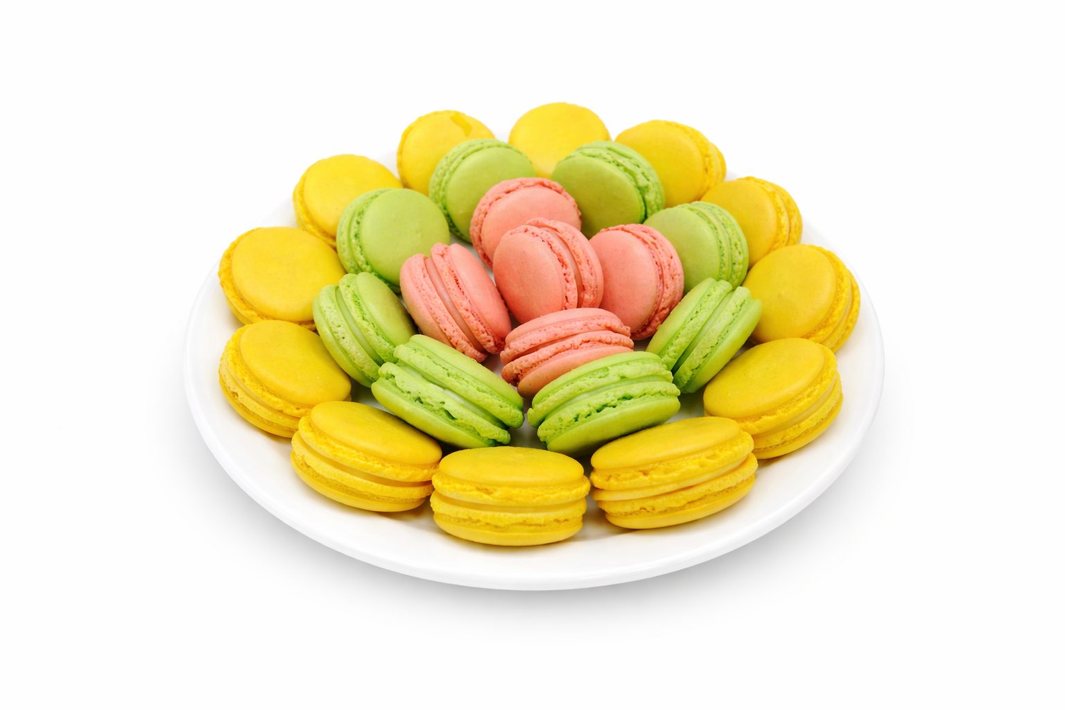 A sweet meringue-based confection made with egg white, icing sugar, granulated sugar, almond meal, and food colouring.